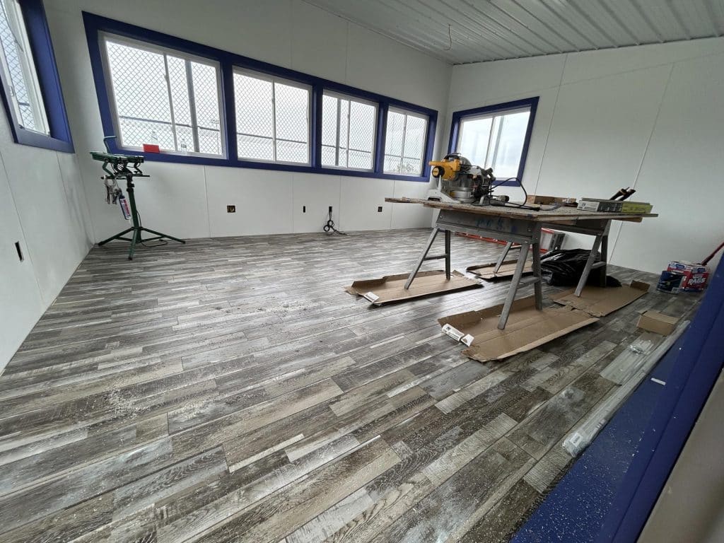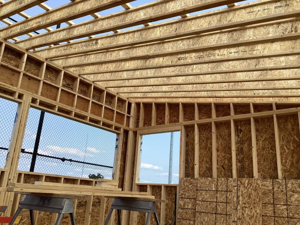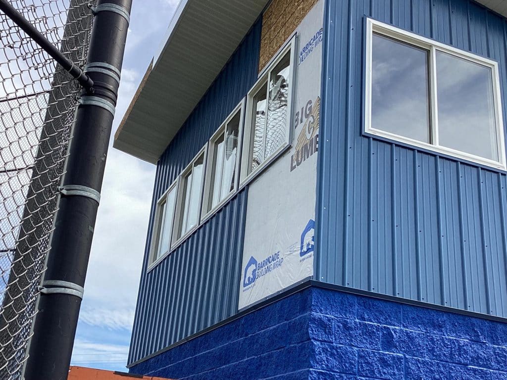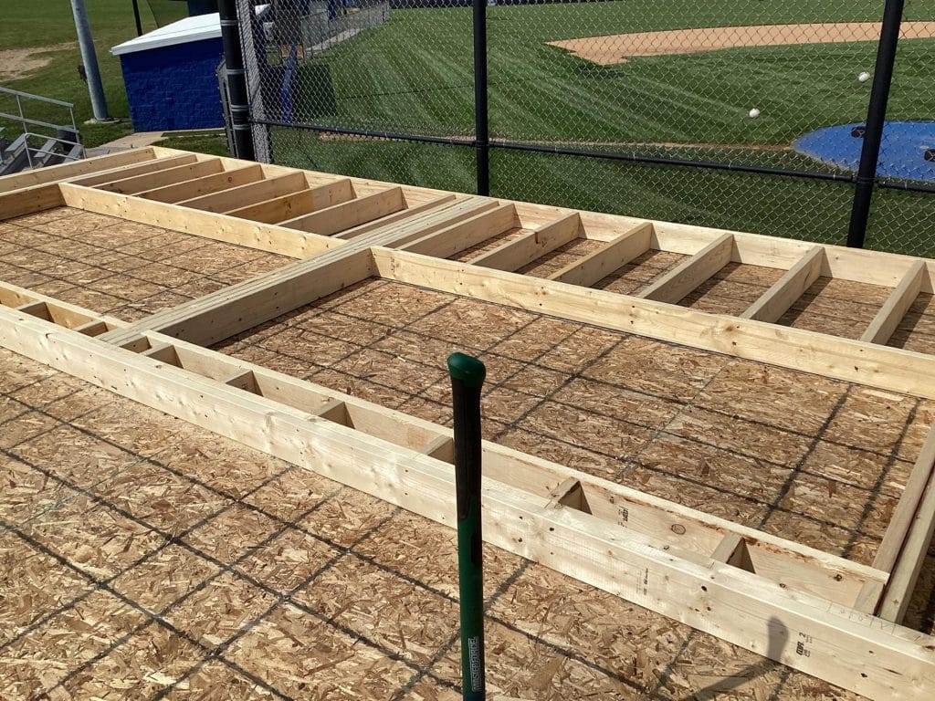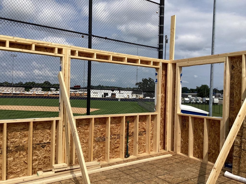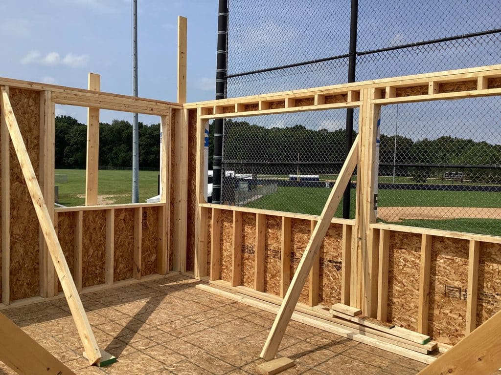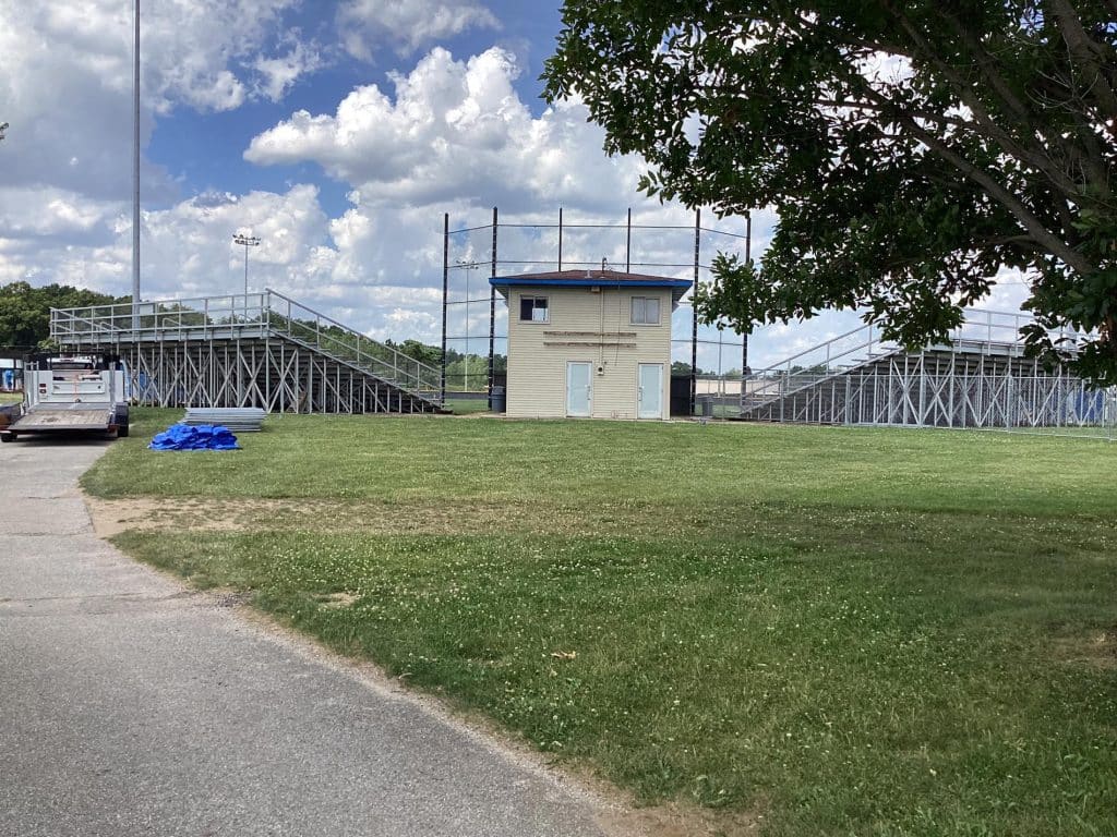 The new press box is a 20-foot by 16-foot elevated facility located directly behind home plate, designed to support media, coaching staff, and game-day operations with durability, functionality, and a professional appearance. Base Level: Built with Concrete Masonry Units (CMU) for a strong, secure foundation. Second Floor: Framed and wrapped in weather-resistant steel siding, offering long-term protection and a clean, modern look. Access: A secure steel exterior stairway provides safe and durable access to the second level. Climate Control: Fully insulated and equipped with an electric heater to maintain comfort during colder months. Technology: Pre-wired for audio systems, internet connectivity, and video feeds. Exterior Design: Finished in school colors.